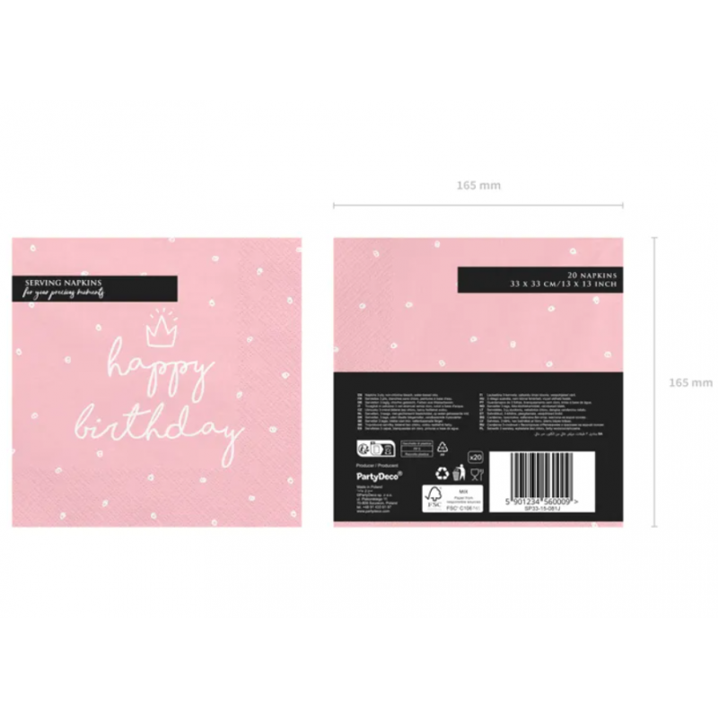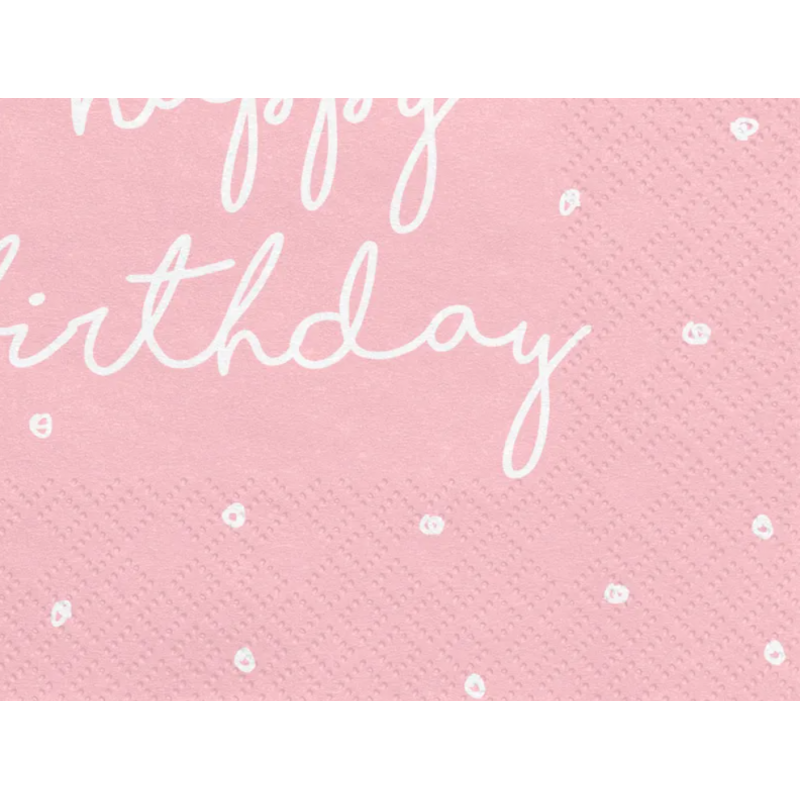 Serwetki napis Happy Birthday różowe - 20 sztuk