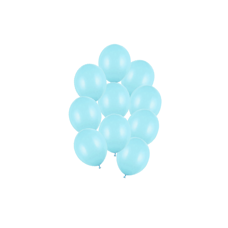 Zestaw 10 sztuk wysokiej jakości balonów lateksowych w kolorze błękitnym.