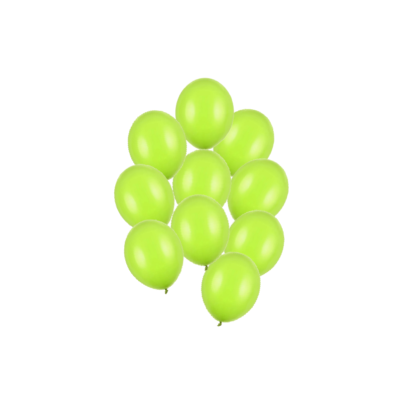 Zestaw 10 sztuk wysokiej jakości balonów lateksowych w kolorze limonkowym.
