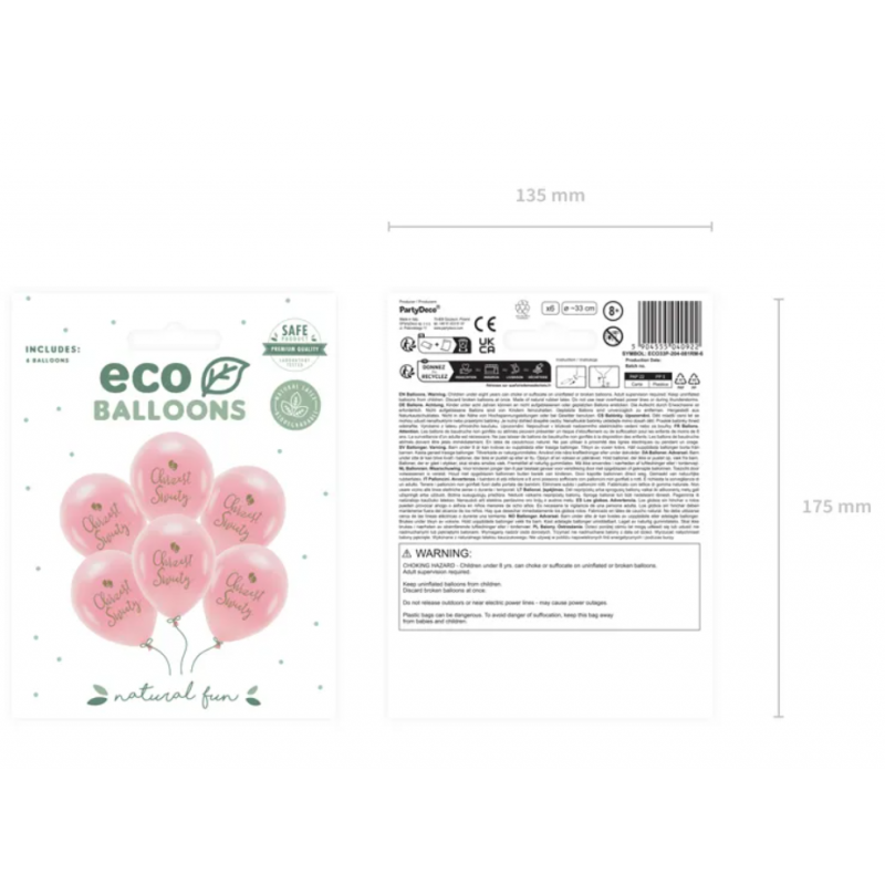 • Balony nadruk Eco, Chrzest Święty rumiany różowy 33 cm - 6 sztuk
