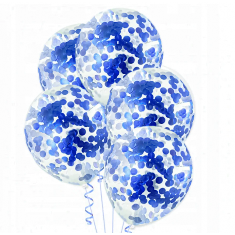 Wysokiej jakości balony transparentne z konfetti w kolorze niebieskim holograficznym.