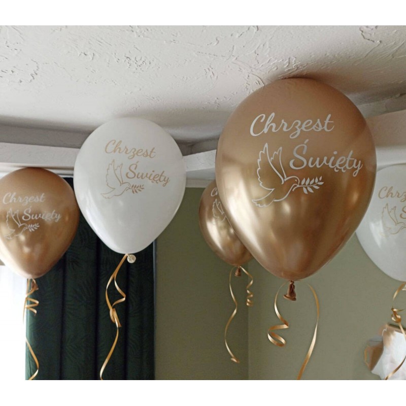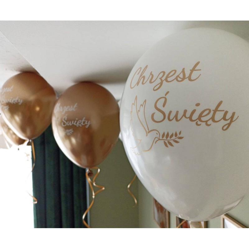 Balony lateksowe chromowane złote na Chrzest Święty.