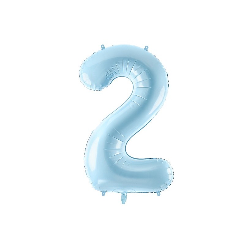 Balon foliowy pastelowy w kształcie 2 w kolorze jasnoniebieskim.