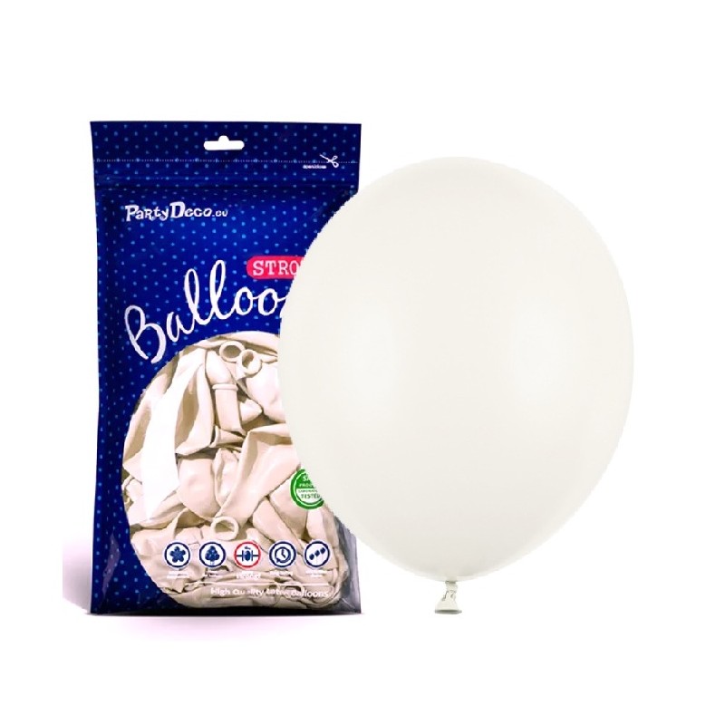 Zestaw 100 sztuk wysokiej jakości balonów lateksowych w kolorze złamanej bieli.