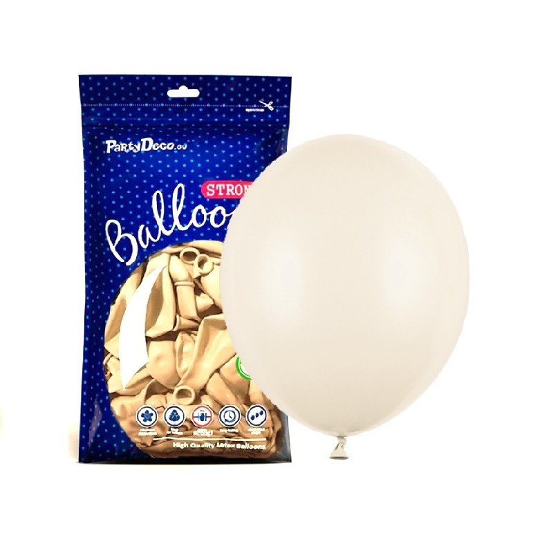 Zestaw 100 sztuk wysokiej jakości balonów lateksowych w kolorze jasnego alabastru.