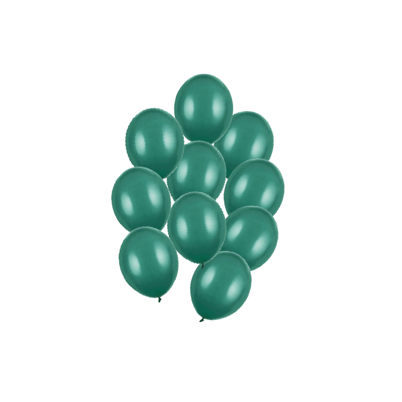 Zestaw 10 sztuk wysokiej jakości balonów lateksowych w kolorze butelkowej zieleni.