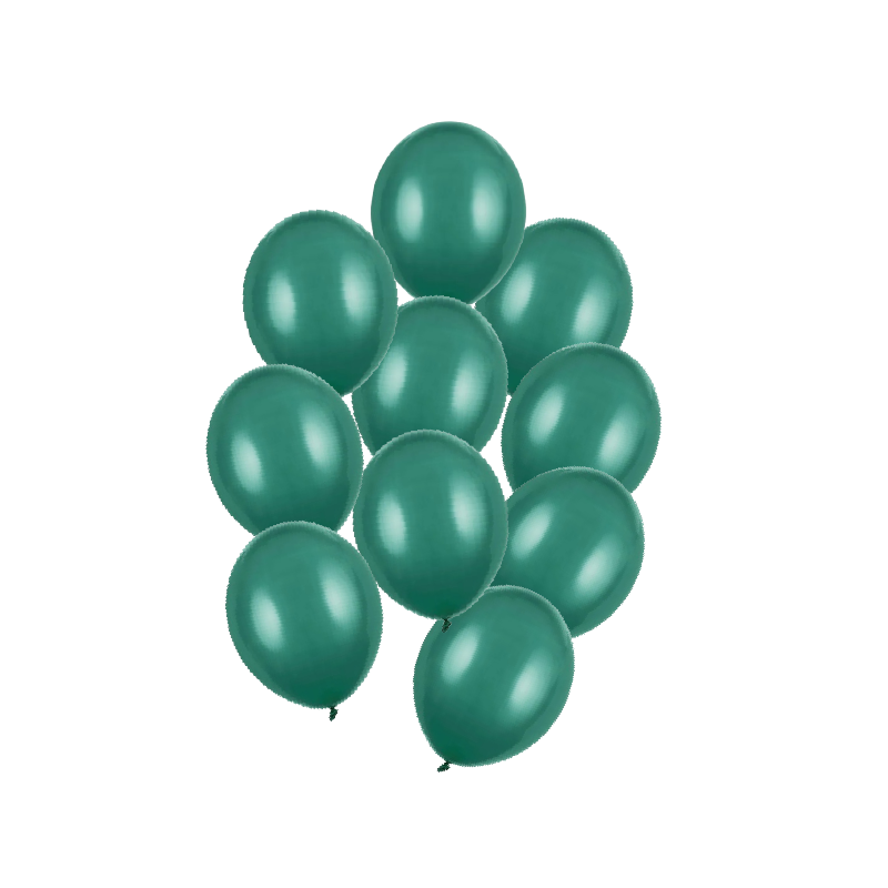 Zestaw 10 sztuk wysokiej jakości balonów lateksowych w kolorze butelkowej zieleni.
