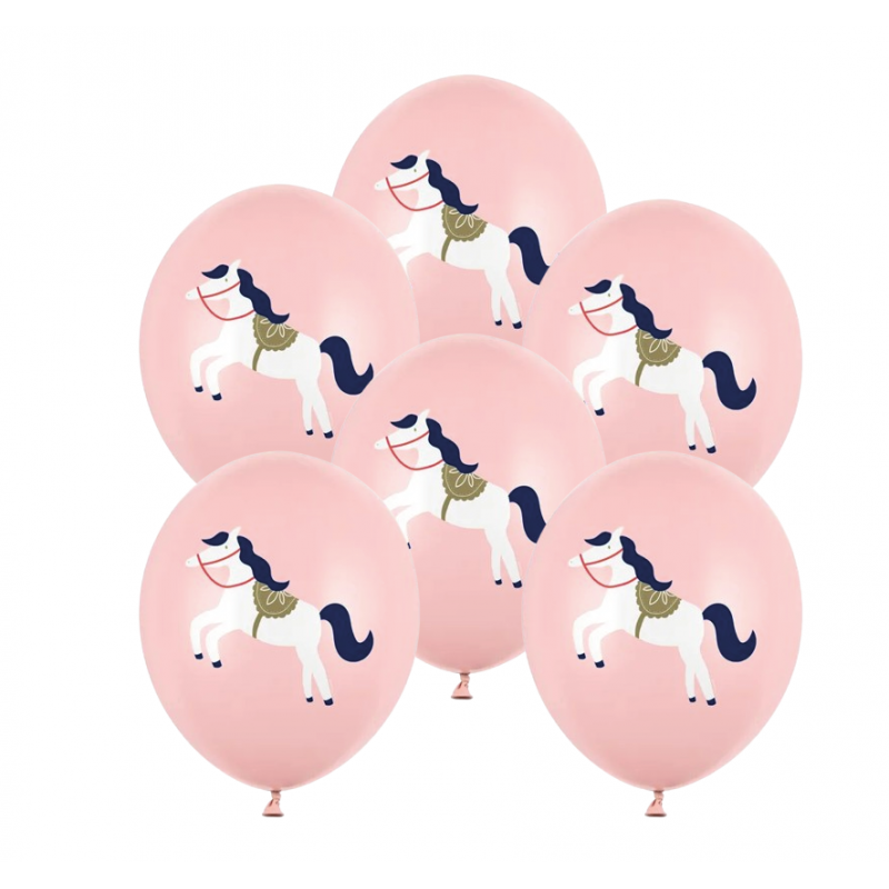 Balony nadruk Konik Pastel Pale Pink - 6 sztuk