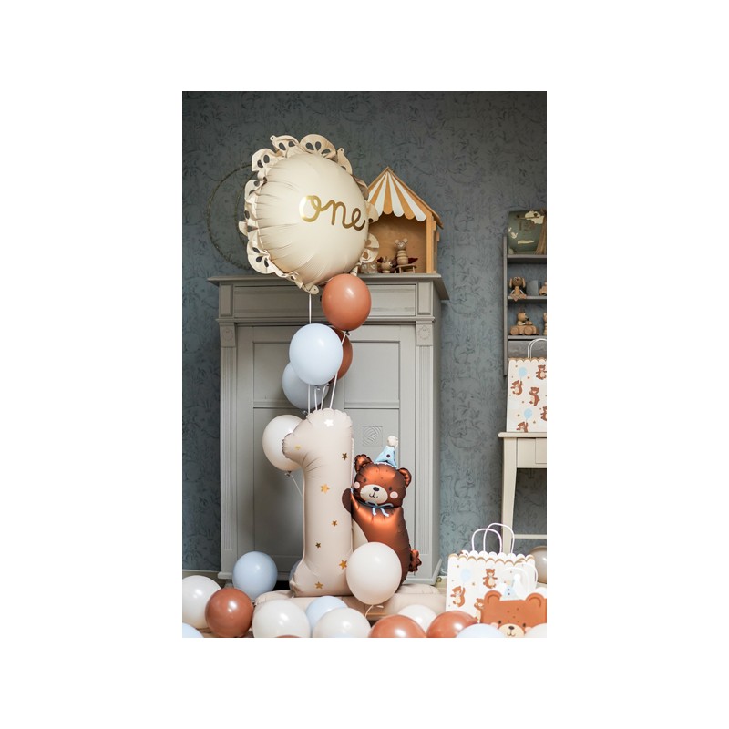 Balon foliowy w kształcie cyfry 1 z misiem.