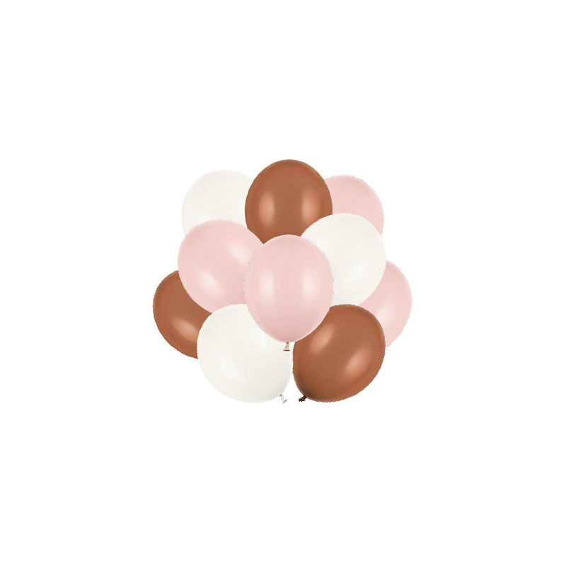 Zestaw 10 sztuk wysokiej jakości balonów lateksowych w kolorach złamanej bieli, brudnego różu, kawowym.