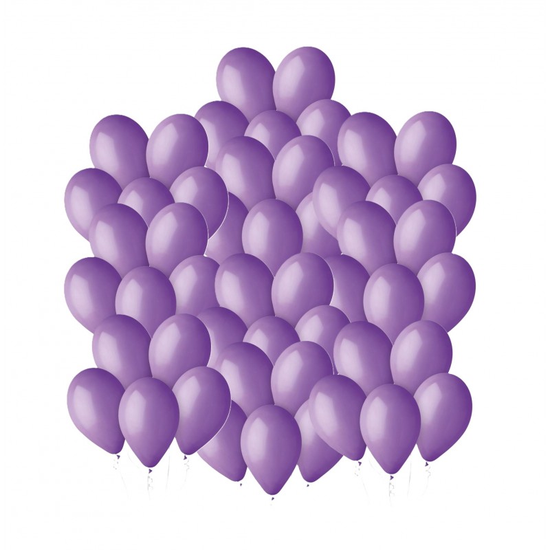 Zestaw 50 sztuk wysokiej jakości balonów lateksowych w kolorze lawendowym.