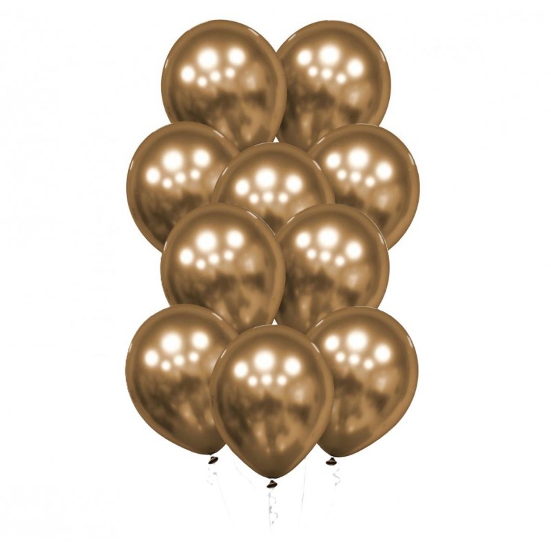 Zestaw 10 sztuk wysokiej jakości balonów lateksowych w kolorze chromowanym złotym.