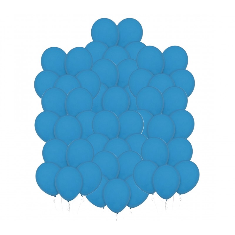 Zestaw 50 sztuk wysokiej jakości balonów lateksowych w kolorze niebieskim.