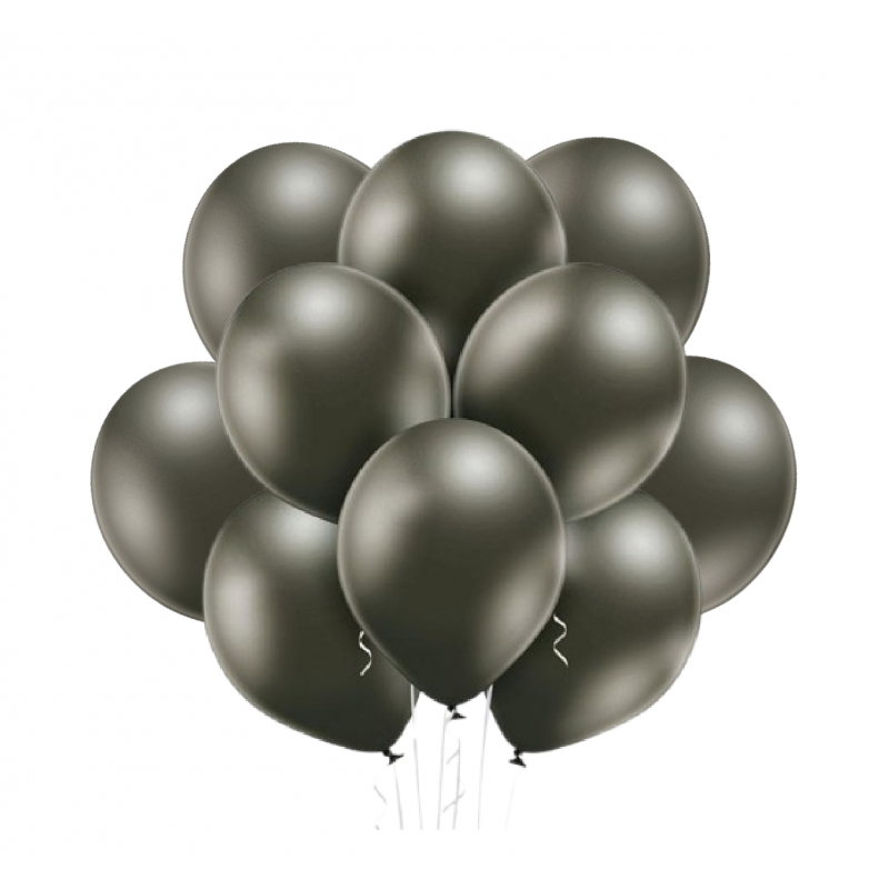 Zestaw 10 sztuk wysokiej jakości balonów lateksowych w kolorze antracytowym.