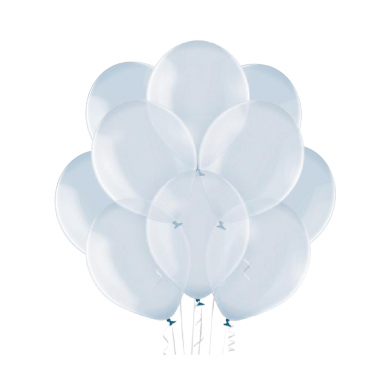 Zestaw 10 sztuk wysokiej jakości balonów lateksowych przezroczystych niebieskich.