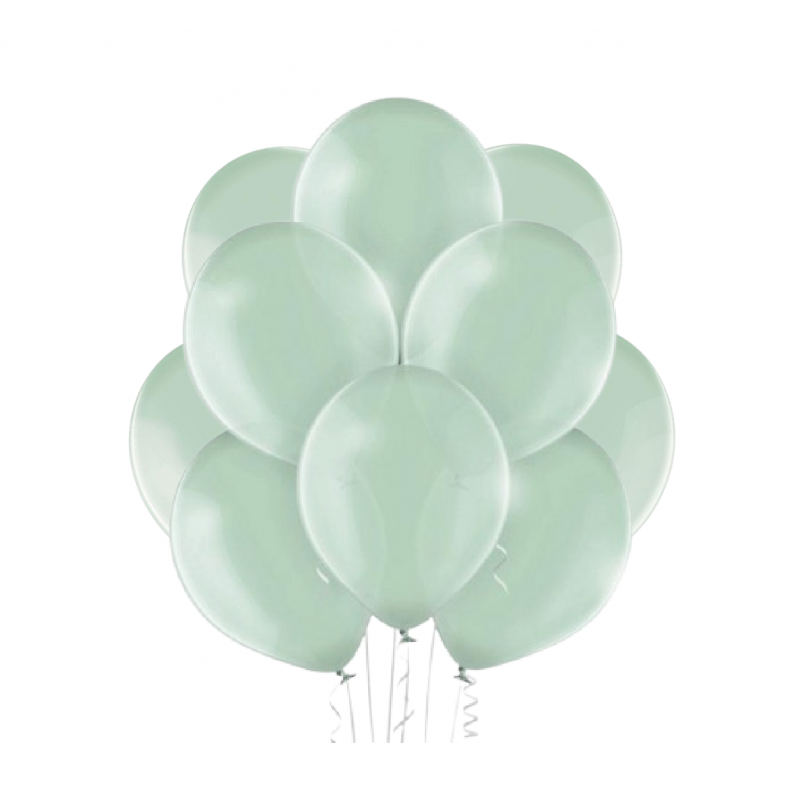 Zestaw 10 sztuk wysokiej jakości balonów lateksowych przezroczystych jasnozielonych.