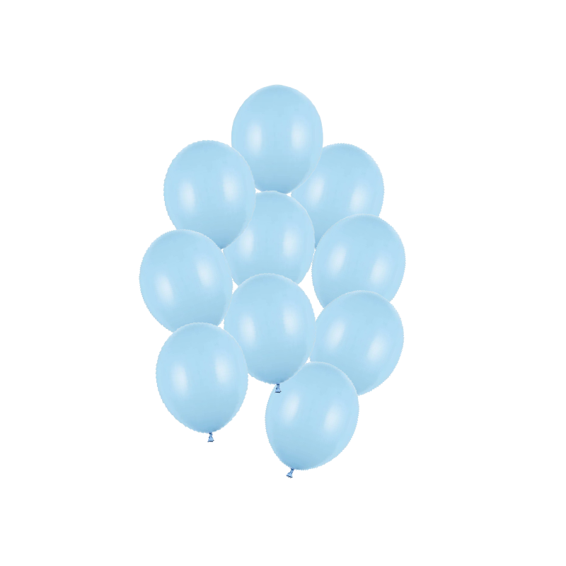 Zestaw 10 sztuk wysokiej jakości balonów lateksowych w kolorze błękitnym.
