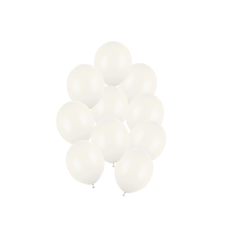 Zestaw 10 sztuk wysokiej jakości balonów lateksowych w kolorze złamanej bieli.