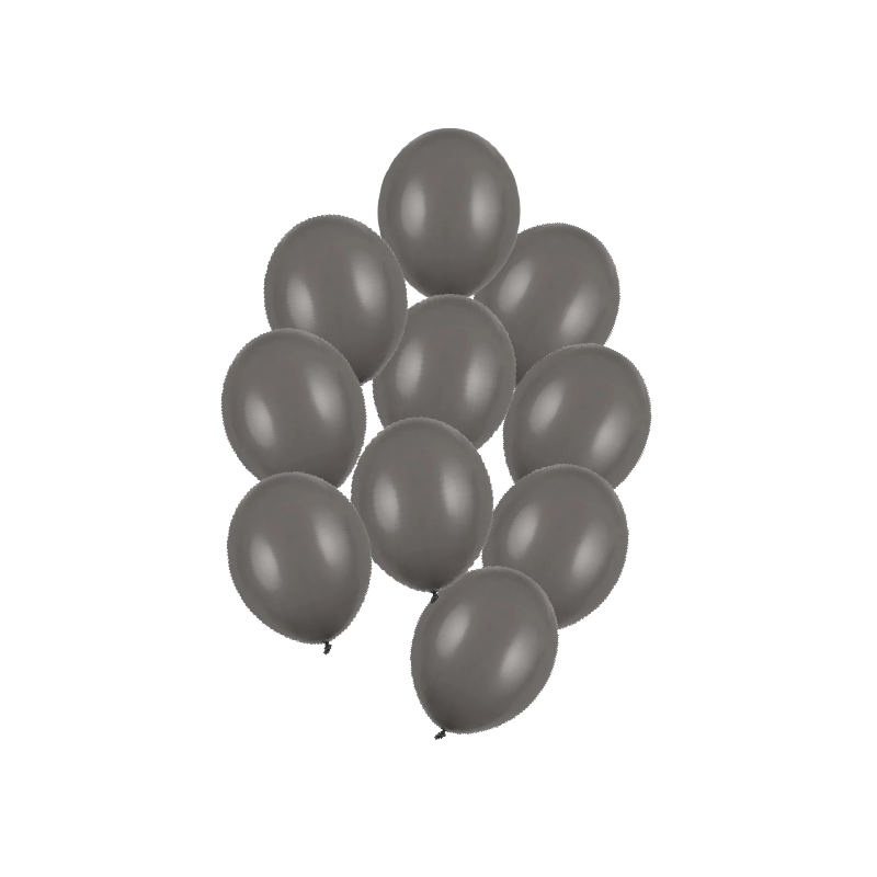 Zestaw 10 sztuk wysokiej jakości balonów lateksowych w kolorze szarym.