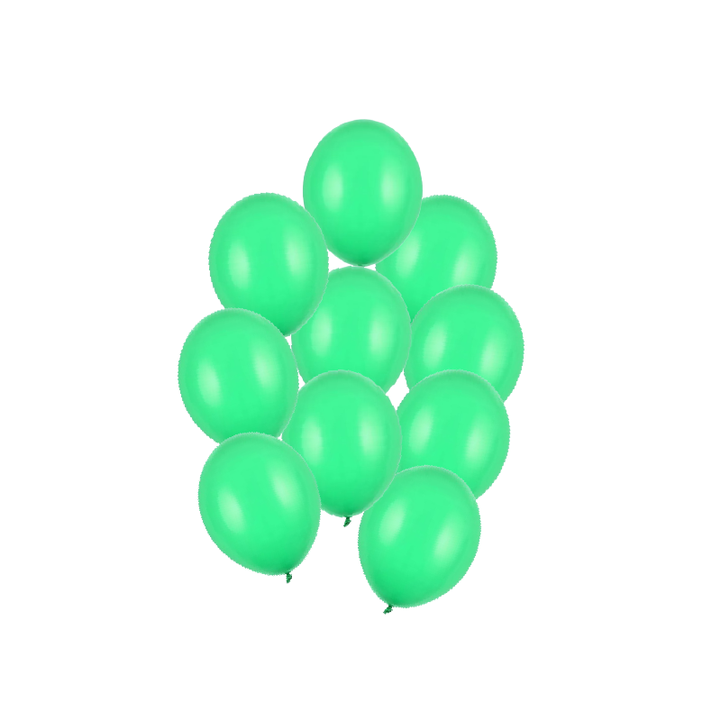 Zestaw 10 sztuk wysokiej jakości balonów lateksowych w kolorze zielonym.