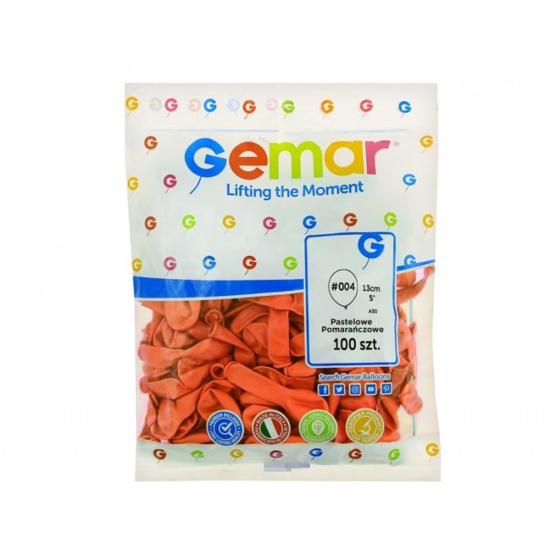 Balony Gemar 13 cm - 5" - pastelowe pomarańczowe Orange A50/004 - 100 sztuk