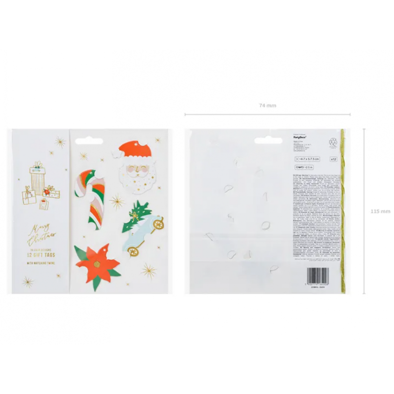 Zawieszki do prezentów Mikołaj - 12 sztuk