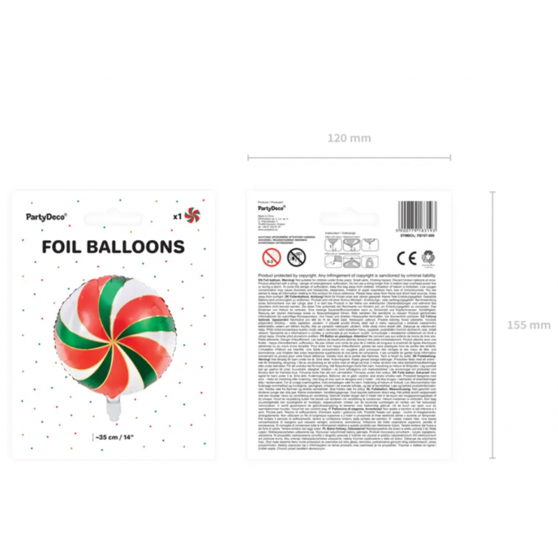⭐MATOWY BALON FOLIOWY - CUKIEREK CZERWONO-ZIELONO-BIAŁY⭐