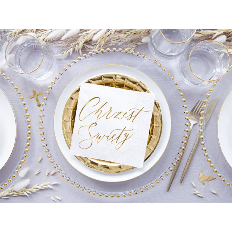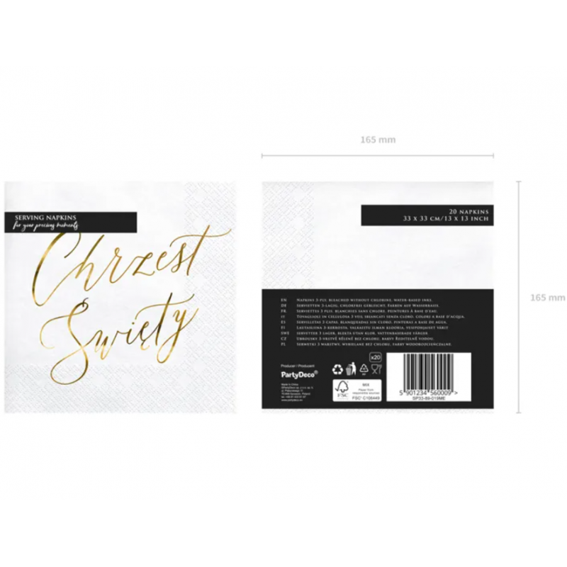 Serwetki napis Chrzest Święty złote - 20 sztuk