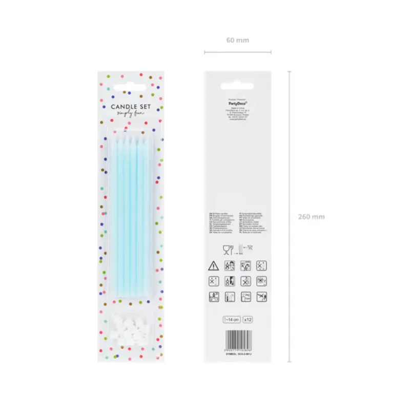 Świeczki wysokie - jasnoniebieskie - 12 sztuk