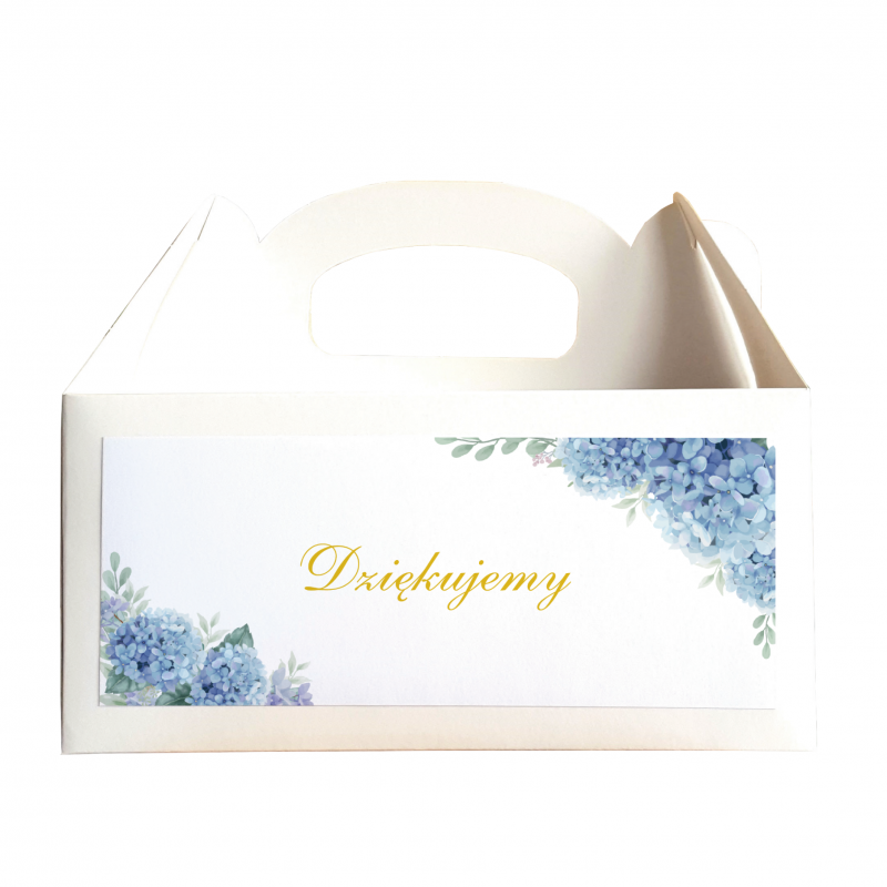 Pudełko na ciasto - Dziękujemy - Niebieska Hortensja
