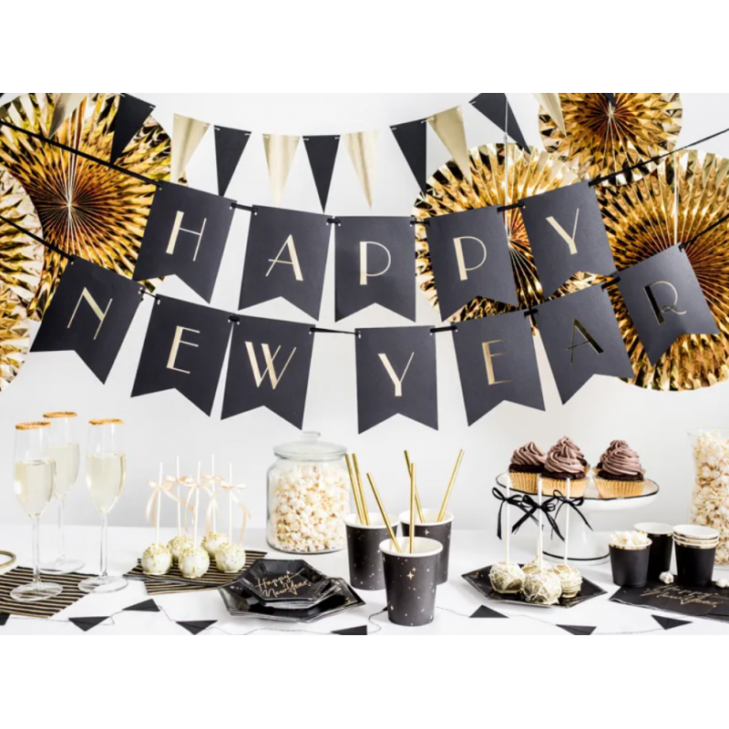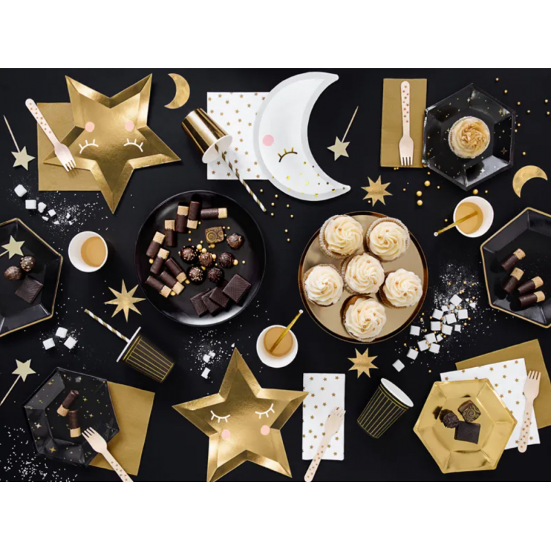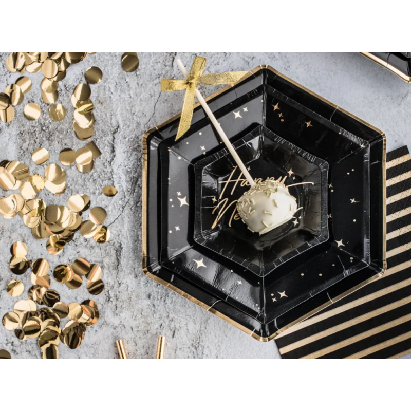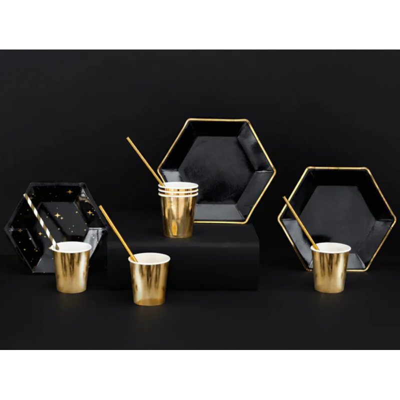 Talerzyki czarne ze złotą ramką 23cm - 6 sztuk