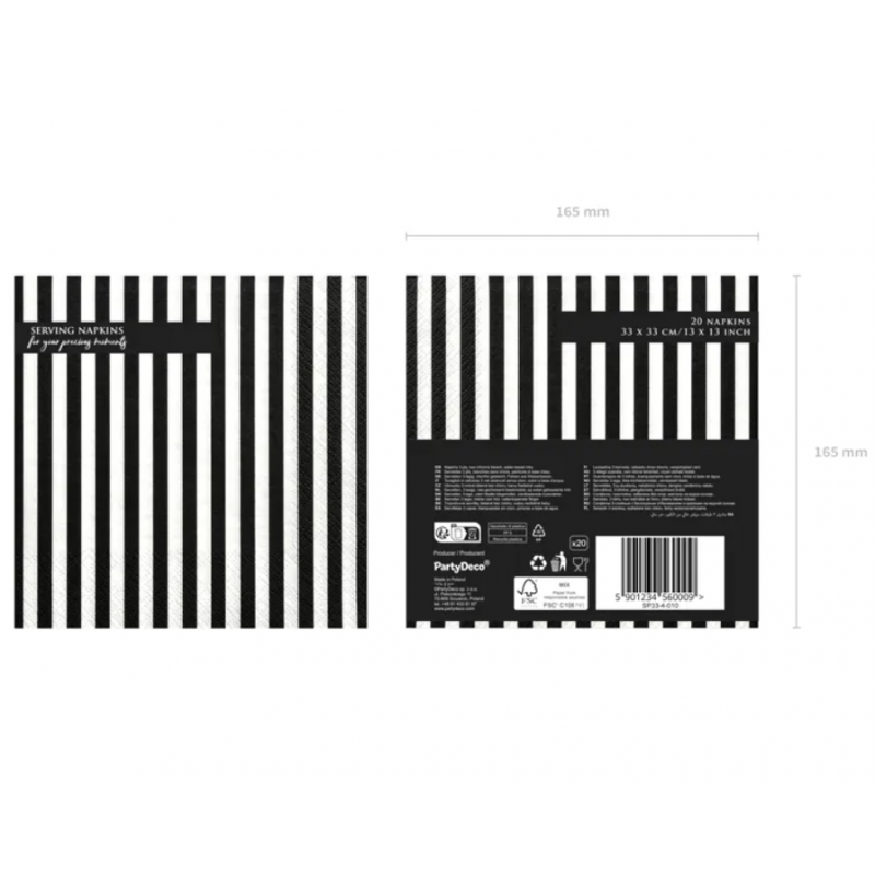 Serwetki czarne paski - 20 sztuk