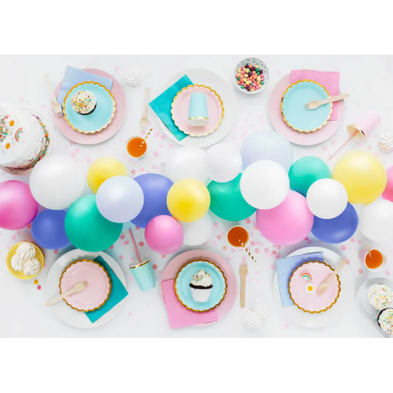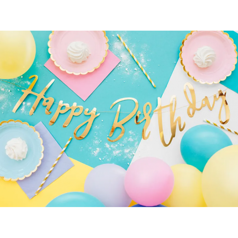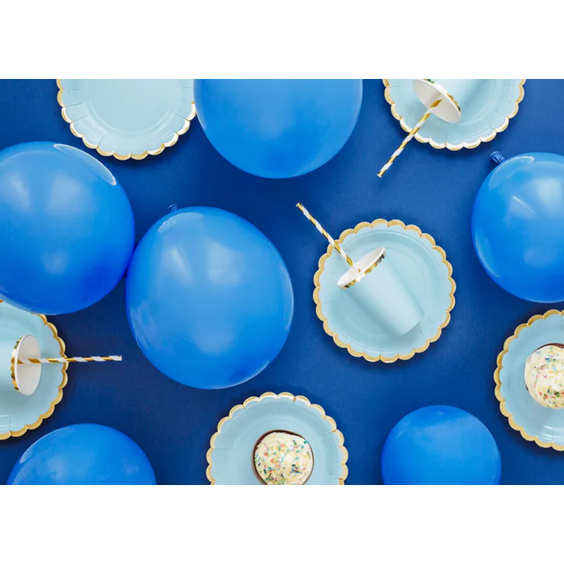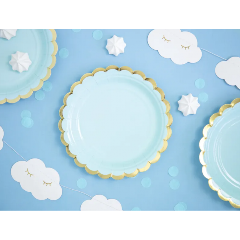 Talerzyki jasnoniebieskie ze złotą ramką 18cm - 6 sztuk