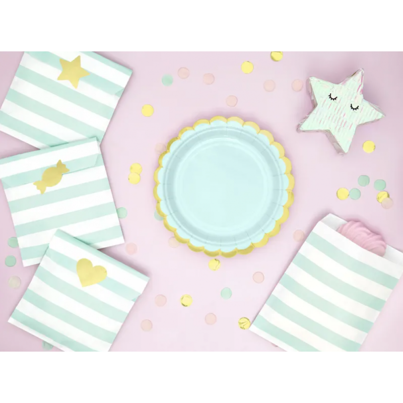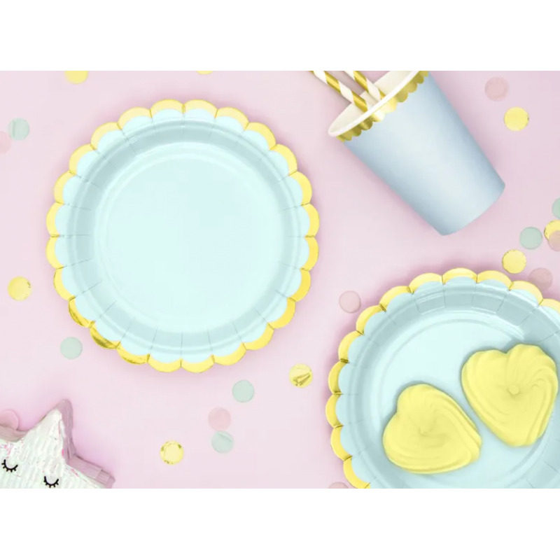 Talerzyki miętowe ze złotą ramką 18cm - 6 sztuk