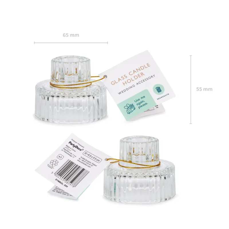Świecznik szklany z rantem 2w1, 6.5x5.5cm - 1 sztuka
