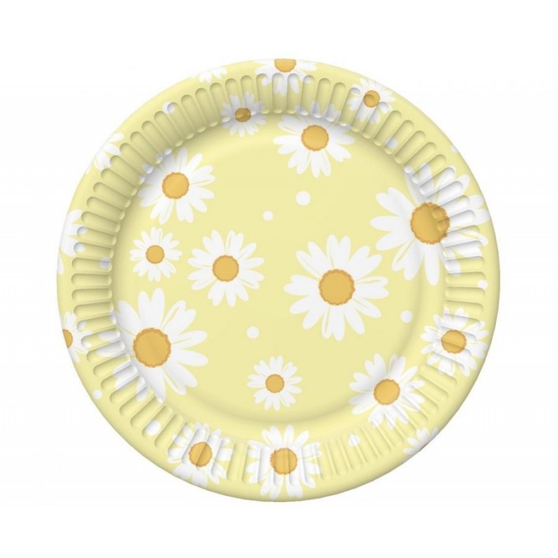 Talerzyki papierowe żółte - stokrotki 18 cm - 6 sztuk