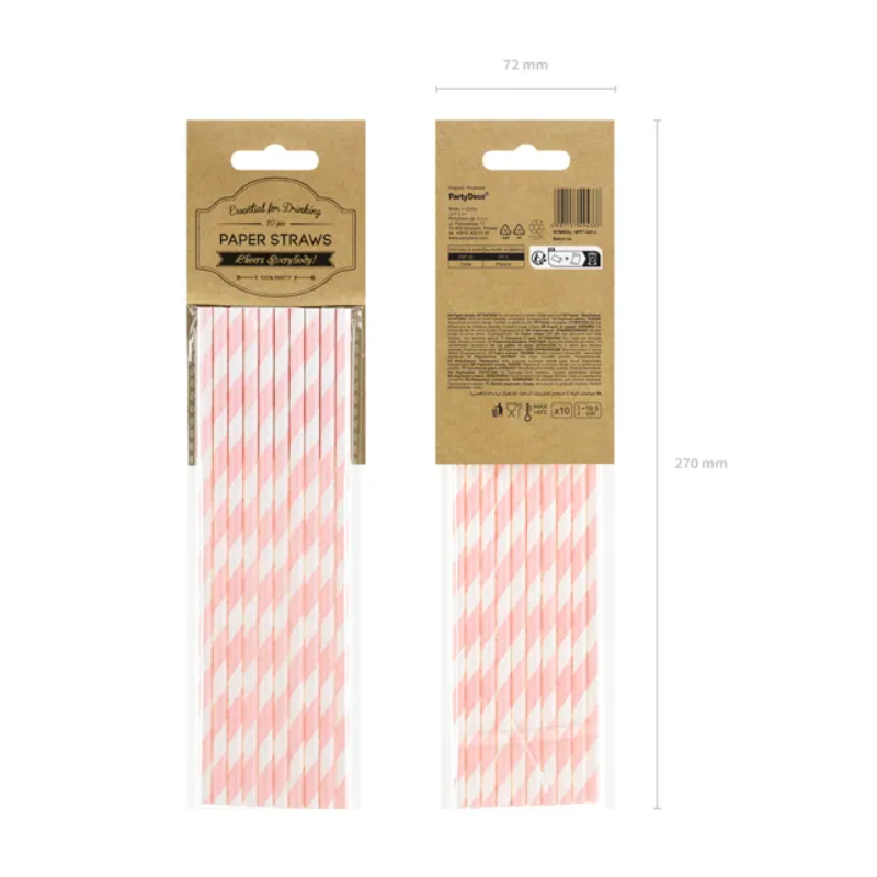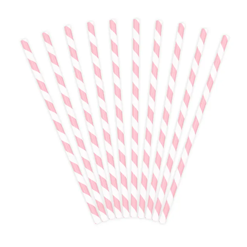 Słomki papierowe białe w jasnoróżowe paski - 10 sztuk