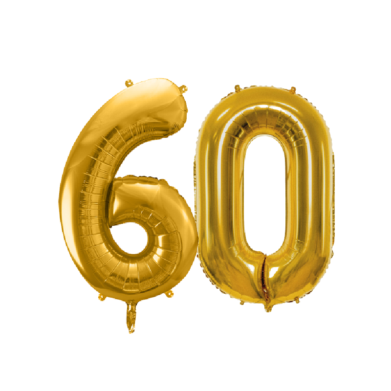 Balon foliowy metalizowany w kształcie 60 w kolorze złotym.