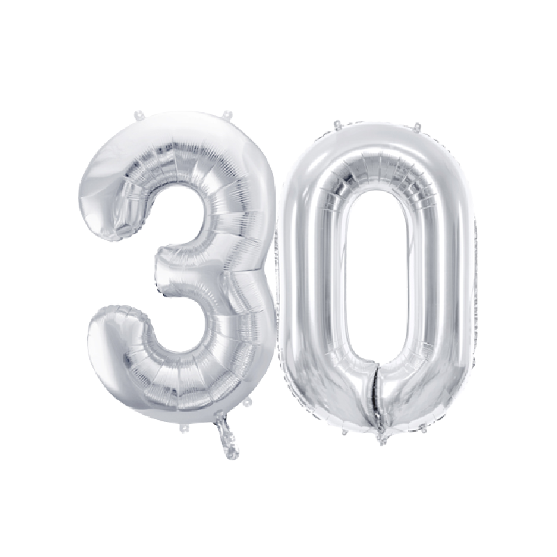 Balony foliowe Cyfra 30 - 86 cm - Srebrny
