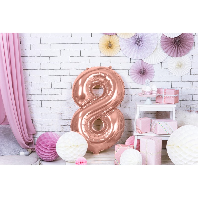 Balon foliowy metalizowany w kształcie 18 w kolorze różowego złota.