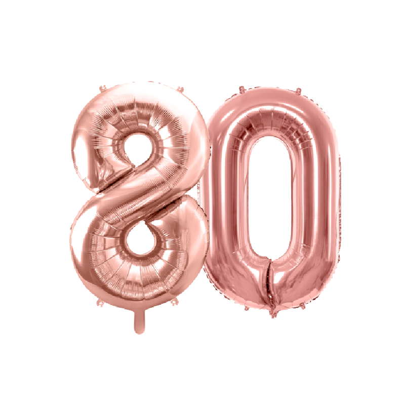 Balon foliowy metalizowany w kształcie 80 w kolorze różowego złota.