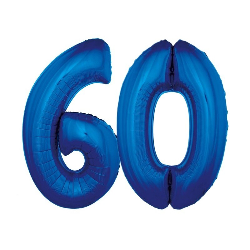 Balony foliowe metalizowane w kształcie 60 w kolorze niebieskim.