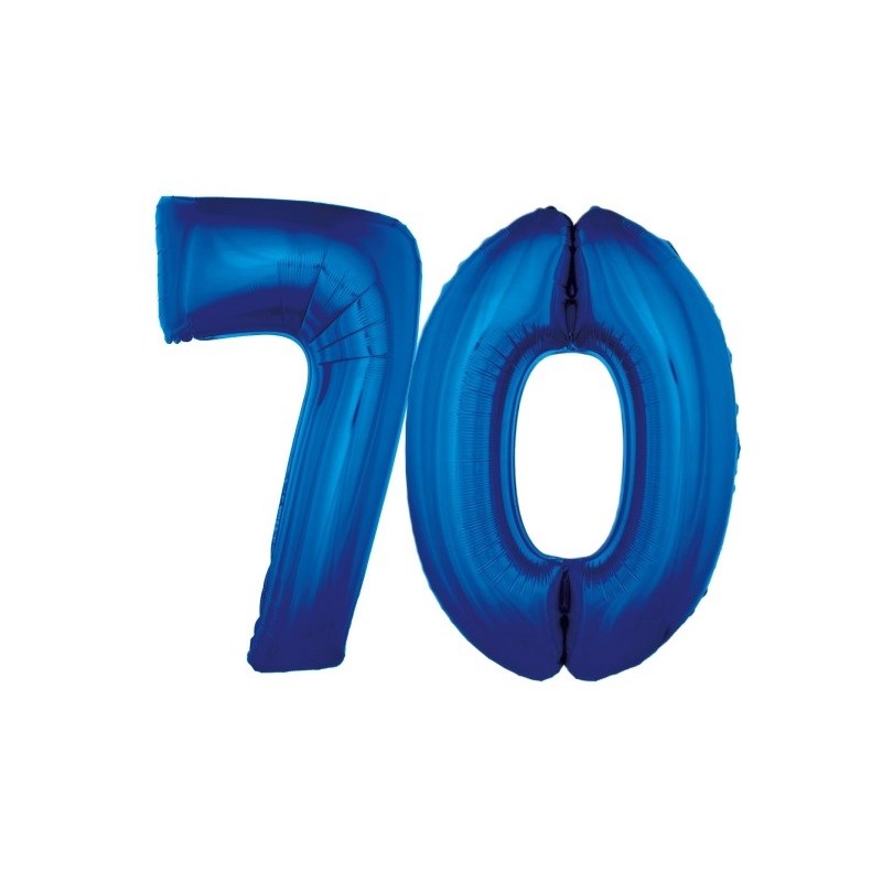 Balony foliowe metalizowane w kształcie 70 w kolorze niebieskim.