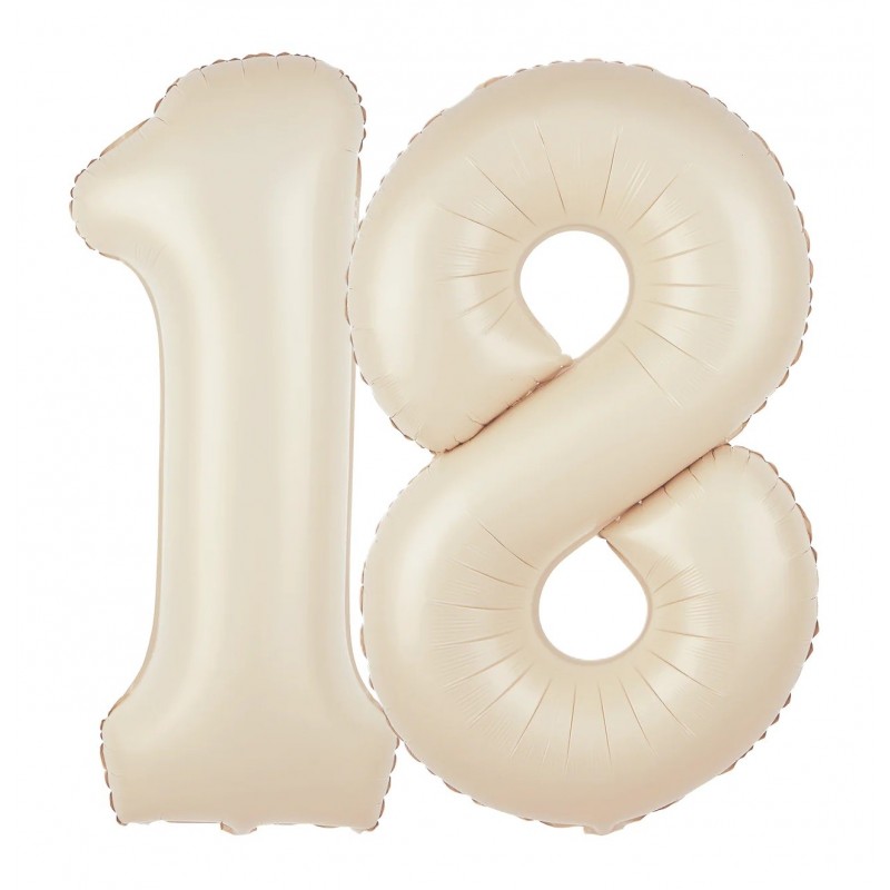 Balony foliowe Cyfra 18 - 100 cm - Kremowy