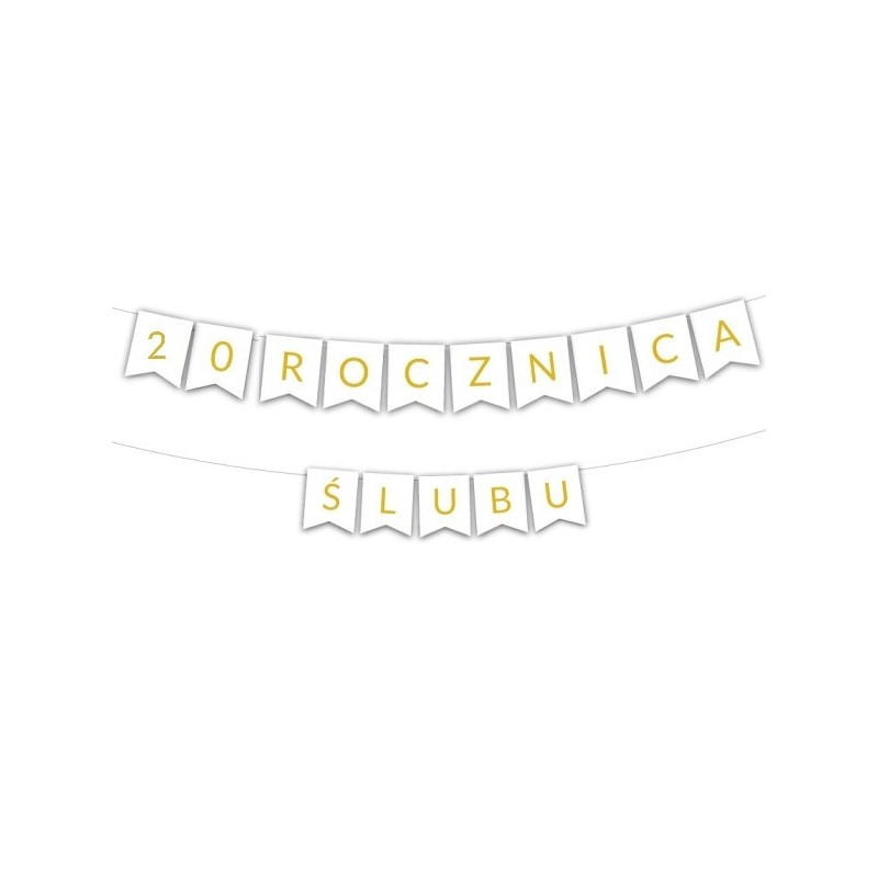 - ⭐ BANER 20 ROCZNICA ŚLUBU - złoty nadruk na białej kartce.