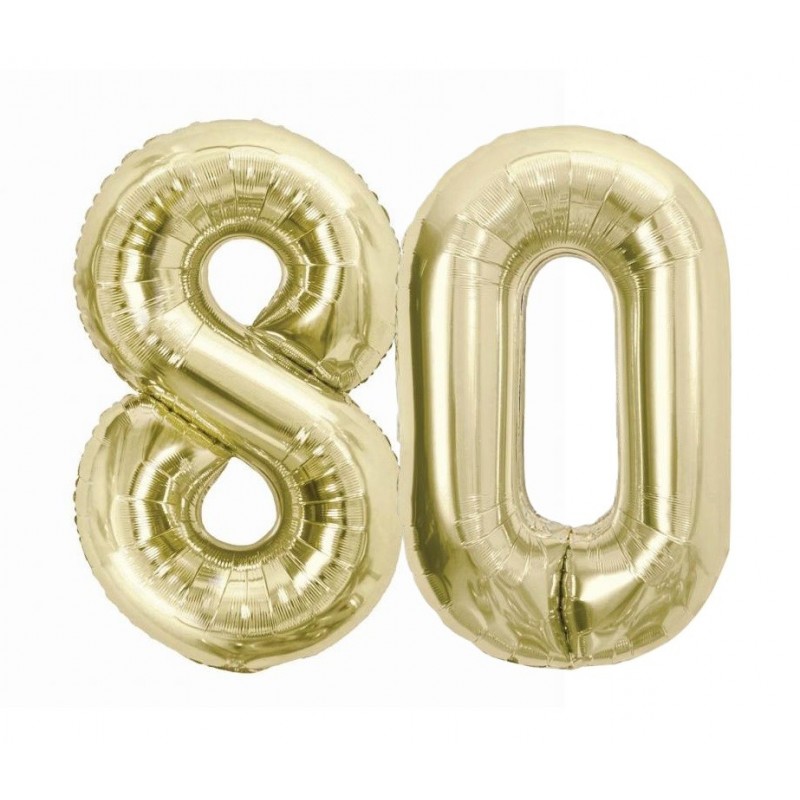 Balony foliowe w kształcie 80 w kolorze złotym szampańskim.