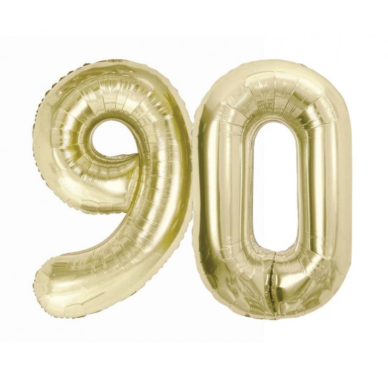 Balony foliowe w kształcie 90 w kolorze złotym szampańskim.