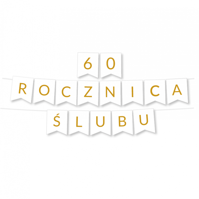 - ⭐ BANER 60 ROCZNICA ŚLUBU - złoty nadruk na białej kartce.