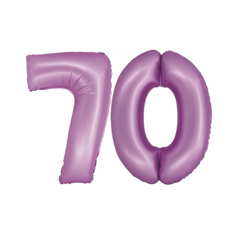 Balony foliowe w kształcie 70 w kolorze lawendowym.