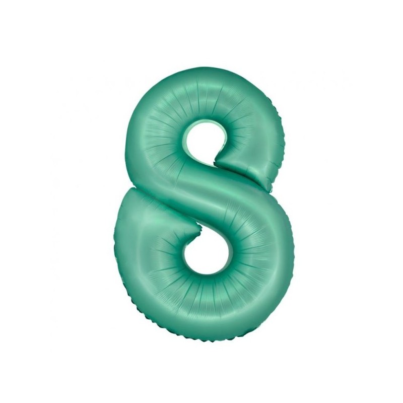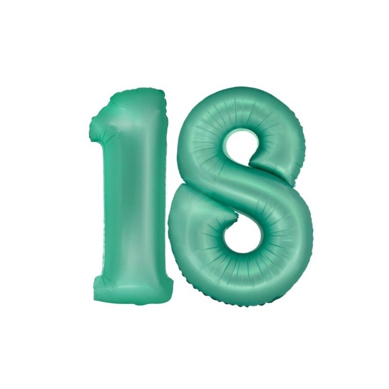 Balony foliowe w kształcie 18 w kolorze miętowym.